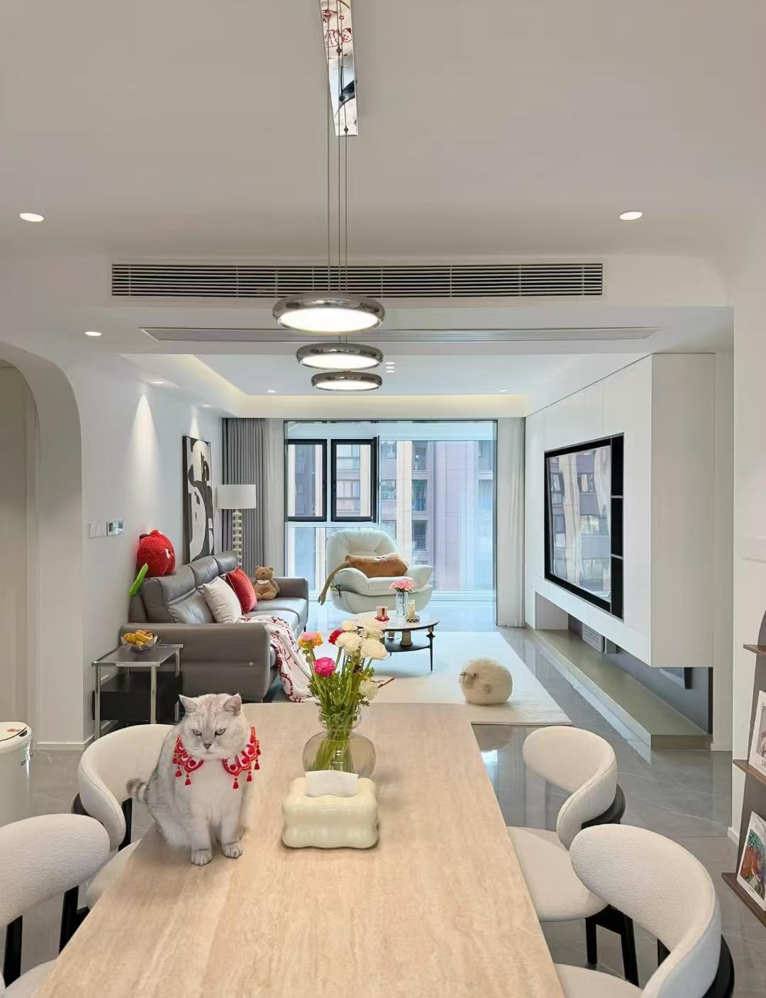 站在客厅看向餐厅,两个空间没有任何阻拦,通透感一览无余。