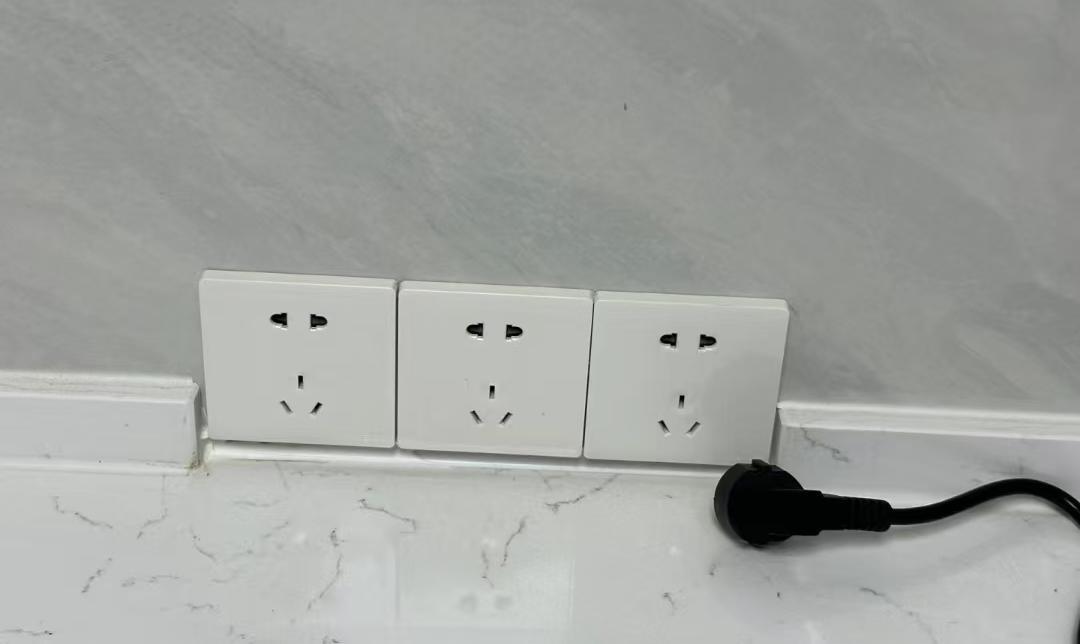 厨房台面上的插座距离台面太近了,导致小家电插头不好插进去,砖贴好了又不好改,只能自己买个插头转换器;