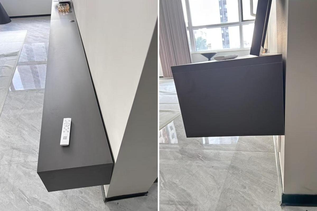 主要是因为悬空安装的方式不保险,即使没有人为因素的干扰,悬空电视柜在重力的作用下也会倾斜,与墙面之间的缝隙会越来越大,甚至会直接掉落,真的不安全。