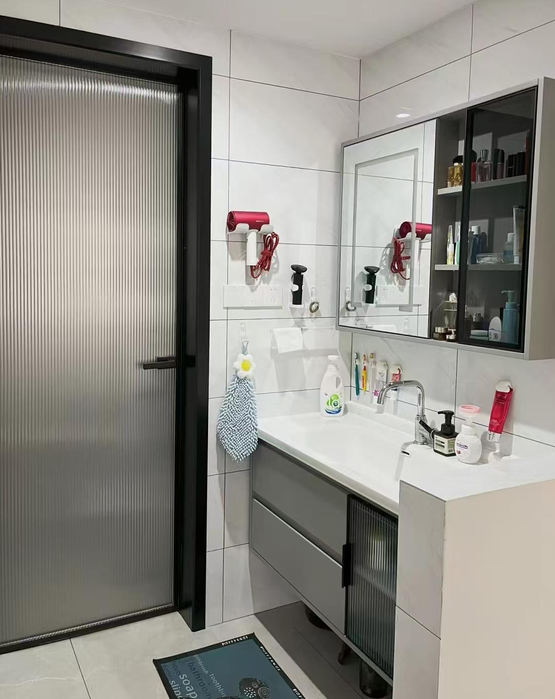 但是入住后发现,干区在过道里,过道的采光并不是特别好,给不了干区多少自然光线;但是半墙的设计却能让洗漱区的杂乱一展无遗,每一个路过过道的人或者从客厅看向过道的人都能清楚的看到洗漱区,一点隐私性都没有。