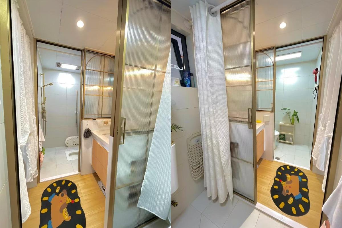 所以我就把公卫改造成了三分离式,洗漱区、马桶区和淋浴区互不干扰,淋浴区内还增设了一个蹲坑,早上洗漱、如厕再也不需要排队等时间了。