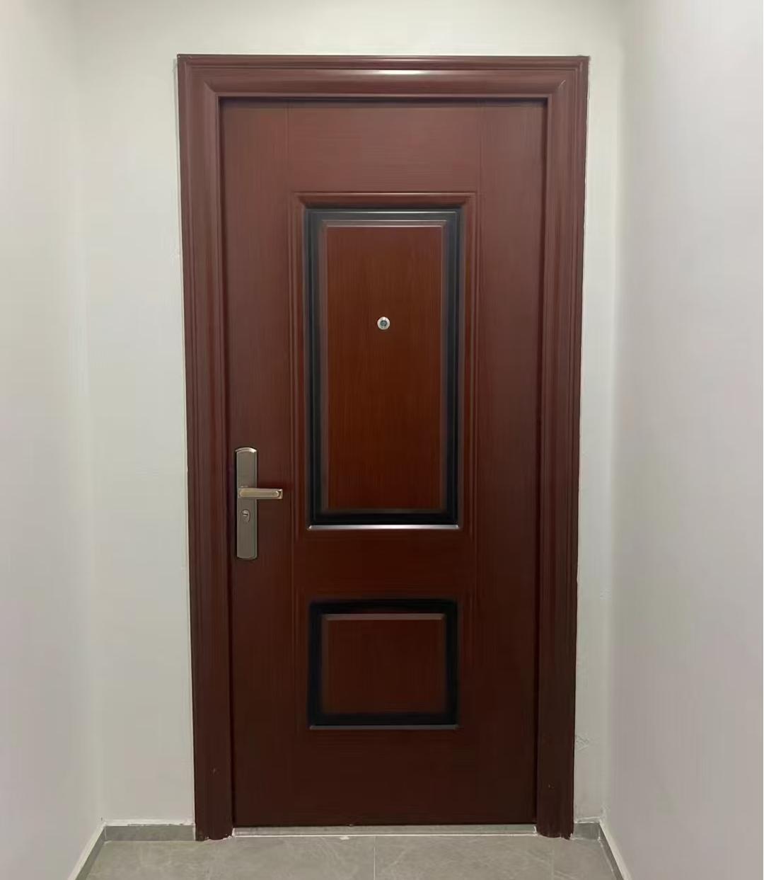 收房时,开发商安装的入户门是统一的猪肝红,看着比较厚重应该质量还不错,但就是颜值实在是接受不了,而且门锁质量看着就不行。