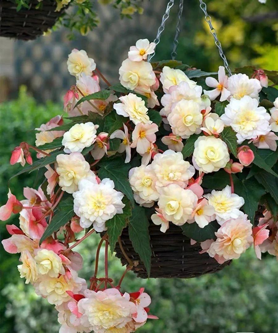 球根海棠品种有很多,大多数花朵都是重瓣的,颜色鲜艳,而且开花量很大,看上去清新淡雅,又很漂亮。