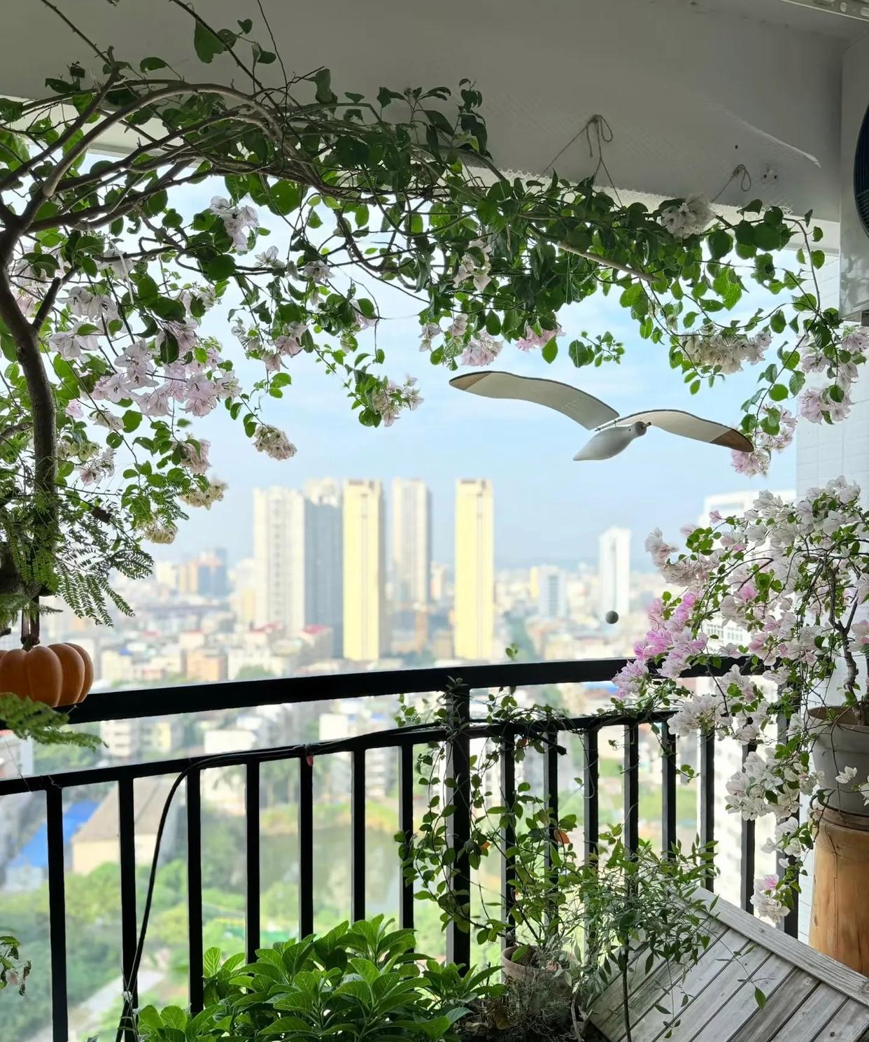 还有很多人家的阳台比较小,偏偏又喜欢飘枝三角梅,或者是三角梅树,希望能够开满树繁花,灿若云霞,或者开出花瀑布,看着都美极了。