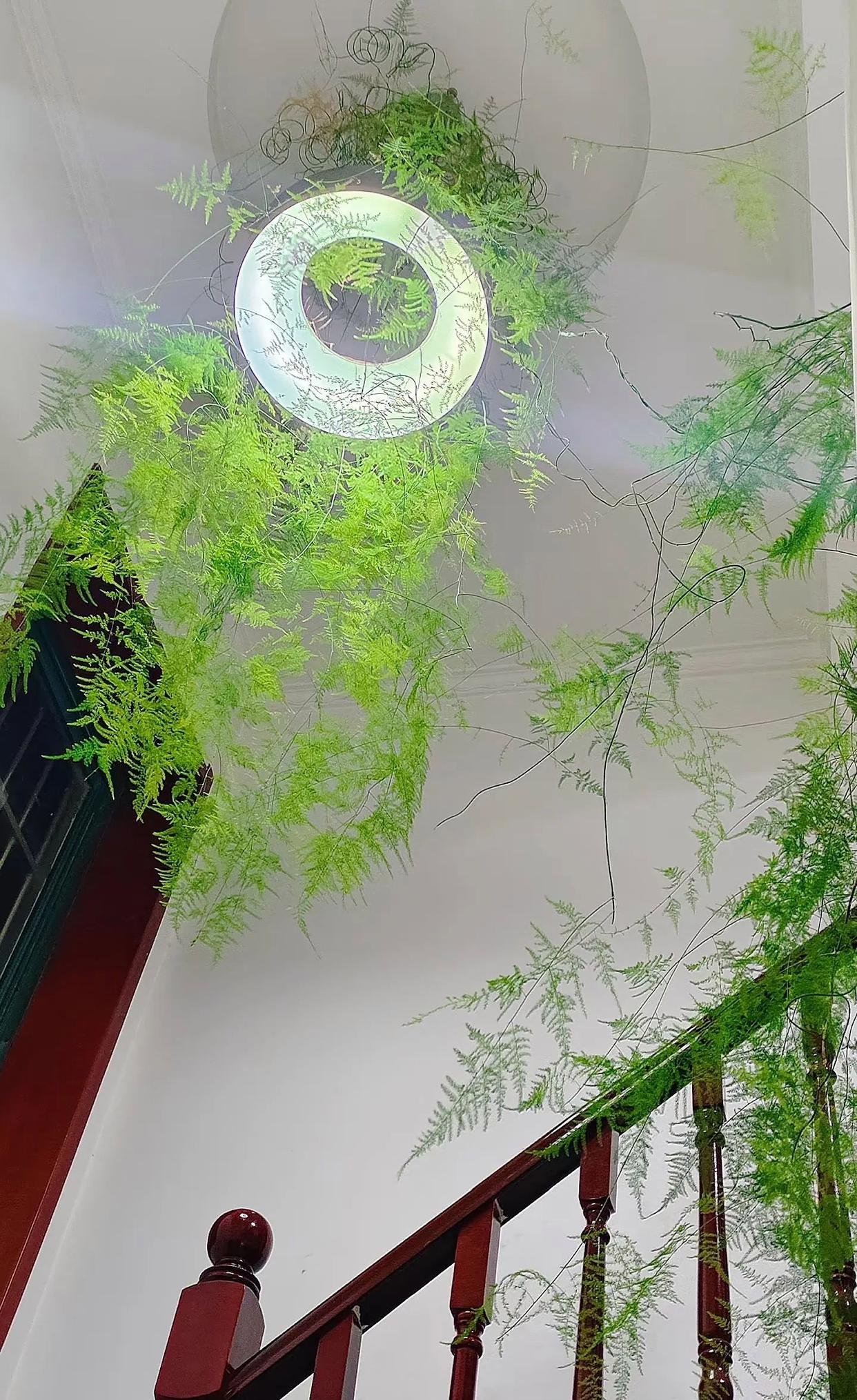 室内养文竹,可以摆在客厅、卧室、电器旁、或者是书房等。如果想作为垂吊植物养,可以搭上架子,或者使用绳子,就能让文竹爬出漂亮的美景。