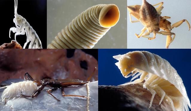 另外,还有一些细菌会从甲烷中获取能量和碳。细菌成了洞穴食物链的第一环,它们滋养着其他各种动物,包括水蛭、蜘蛛、蜈蚣、蜗牛、虾、蝎子。由于长期生活在暗无天日的洞穴中,动物都已经失去了视力和色素,眼睛衰退,身体呈现半透膜。生物总会找到活下去的方法,它们进化出了相应的能力来适应这种恶劣的生存环境。