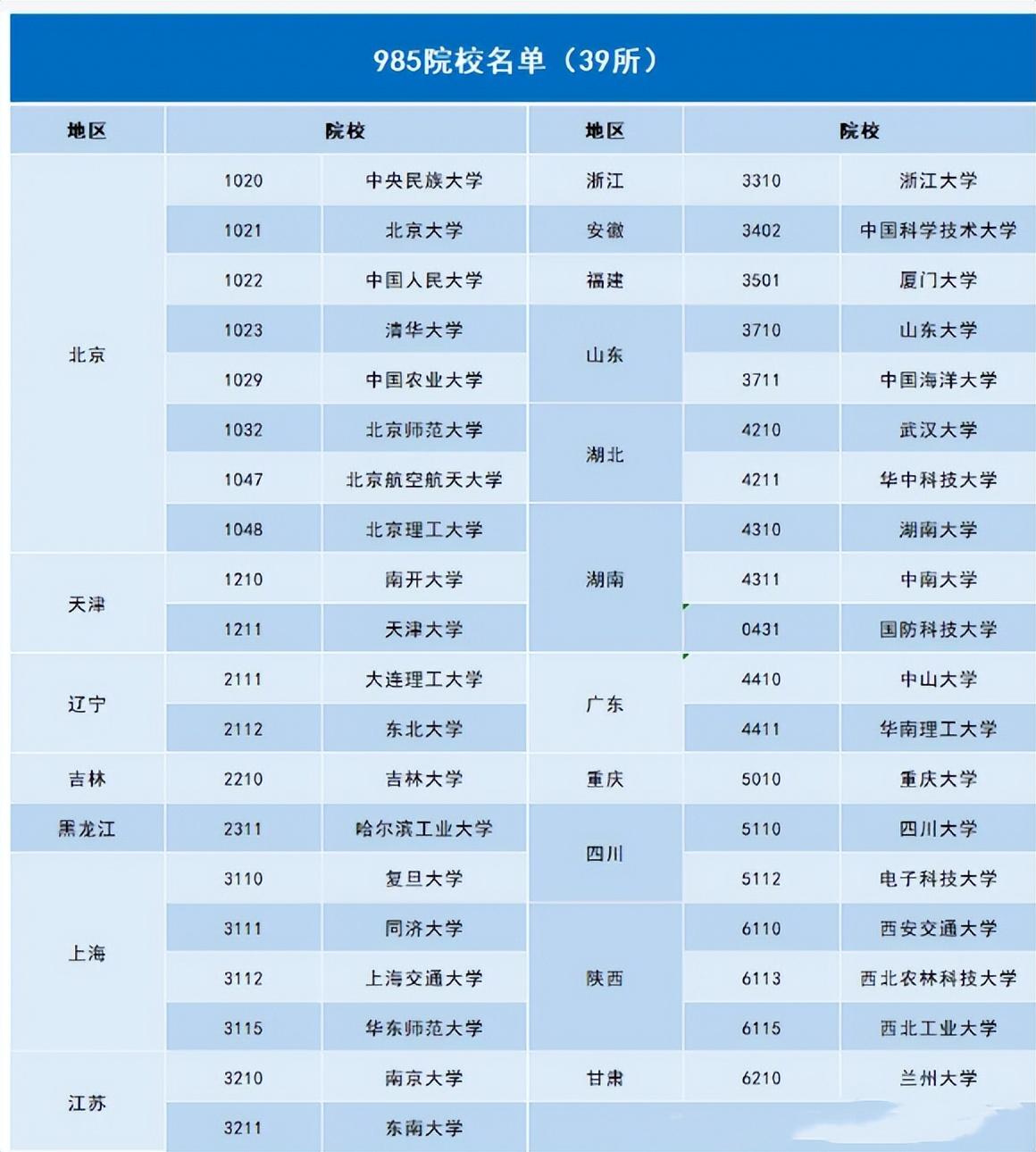 可以看出,985高校站在了国内高校金字塔的顶端,这39所大学,每一所头上都有名校光环,尤其是清北复交,简直就是名校中的名校,考进任意一所大学,学生都会有光明的前途。