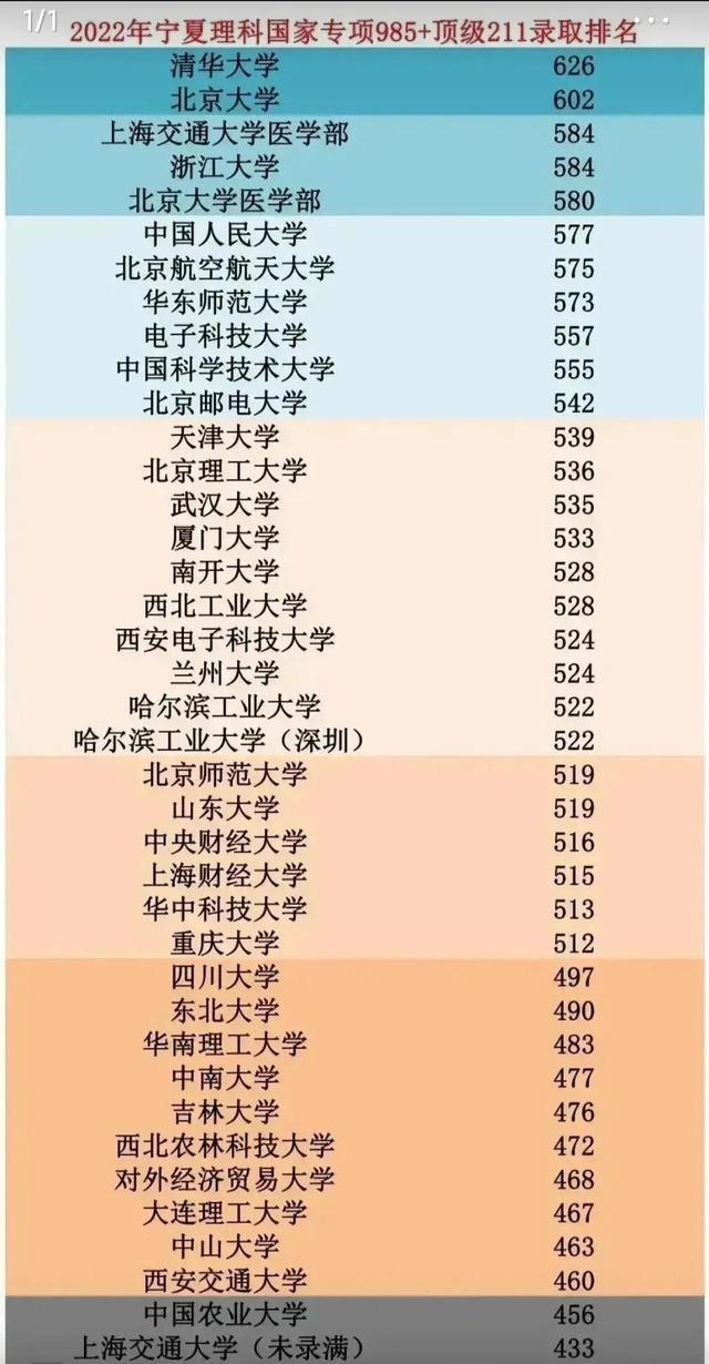 我们都知道,今年的高考试题难度较大,各地区的分数线都有所下降,在今年的高考录取工作当中,宁夏理科录取分数线低于500分的重点高校比比皆是,在39所985院校中,就高达12所。
