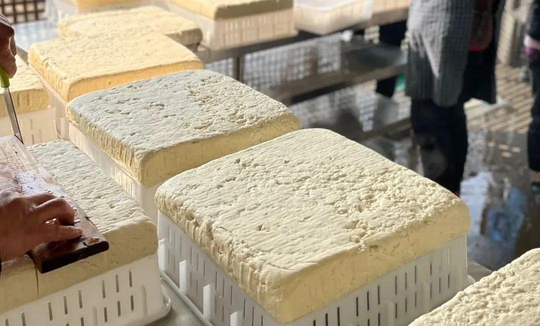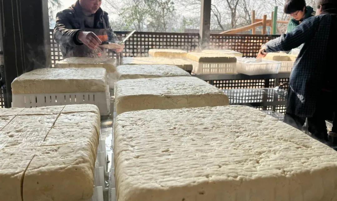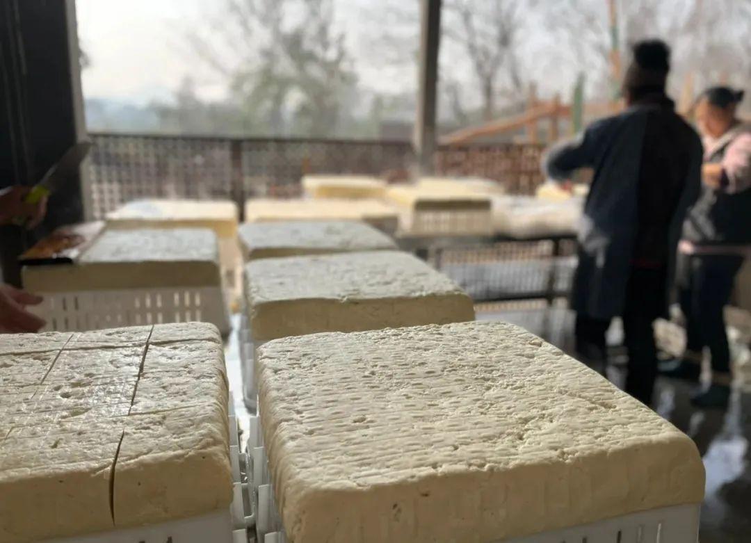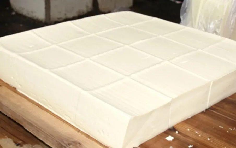 边上的豆腐既要被石头挤压,又要被模具边挤压,所以质地会比中间的豆腐更加紧实。所以,如果我们要吃煎豆腐或是炸豆腐,选用边上的豆腐制作会更不容易碎,更完整。