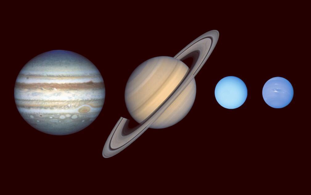 当然,木星的“胃口”再大,也不可能把“冻结线”以外的所有物质都“吃干抹净”,在它更外侧的轨道上,土星、天王星和海王星也同样受益于“冻结线”的馈赠,它们也各自形成了一个比地球大得多的核心,然后,它们也开始吸积氢和氦,成长为巨行星。