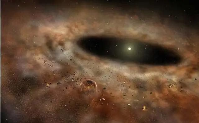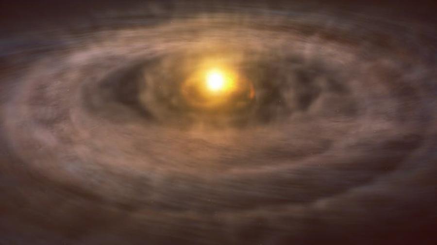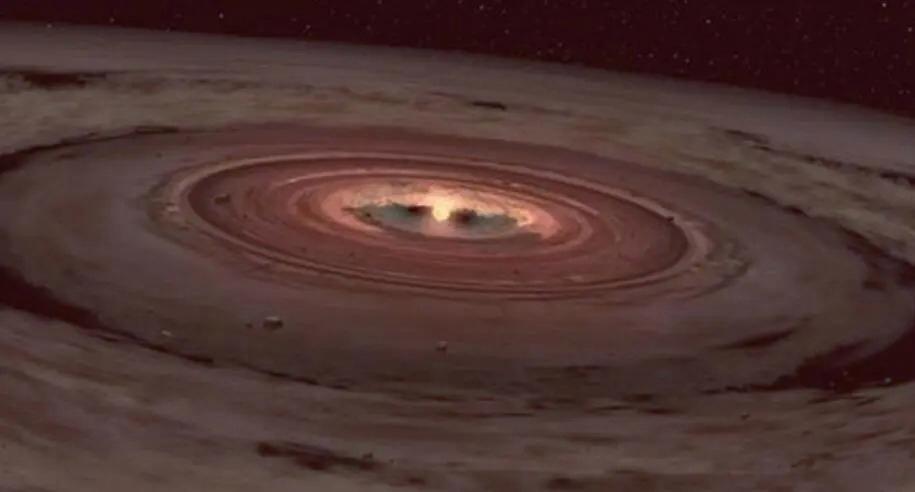 太阳的诞生消耗了星云里绝大部分的物质,但不是全部,而剩下的“边角料”则在引力的作用下,围绕着新生的太阳旋转,形成了一个扁平的盘状结构。
