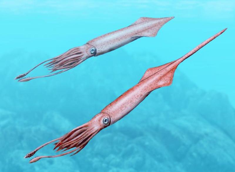 箭石的“鞘”末端尖细,向内逐渐变宽,再接到更宽大的“闭锥”上。而这条鱼吸吮的位置,恰好就是“鞘”的末端,尖细的形状加上生物膜的润滑,让这段骨骼轻而易举地滑入口中。