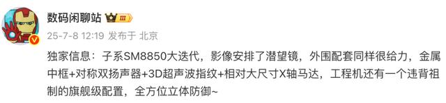 爆料曾提到过,某子系机型正在评估影像旗舰也会用的 OV50Q 主摄,1/1.3 英寸大底加持。