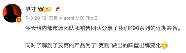 喏,小米内部人士表示,已经给内部市场团队和销售团队分享了 K90 系列的近期筹备。