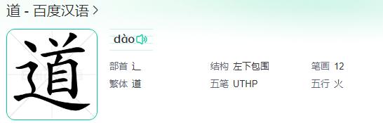 最后,汉字的结构也有抽象性,"道"由两个部分组成,上面的部分是"首",下面的部分是"辶"。