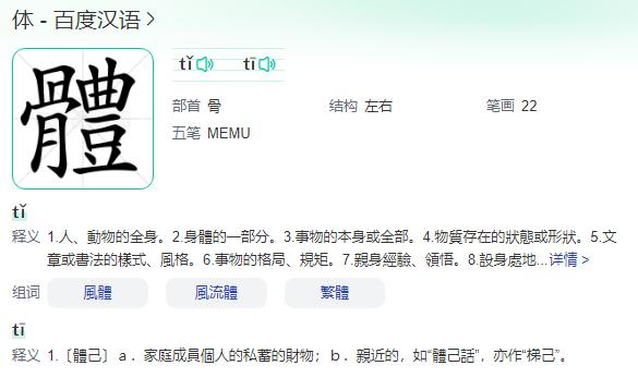 再比如,“體”字,意思是身体,它由21笔组成,而其中的“骨”字部分就有9个笔画,需要掌握很高的书写技巧才能写出规范的字体。