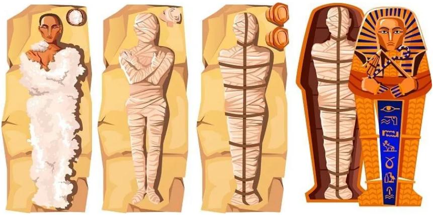 于是专门建造了一个葬地,用于保存自己的尸体,再将尸体涂上防腐物,裹上布料封存起来。