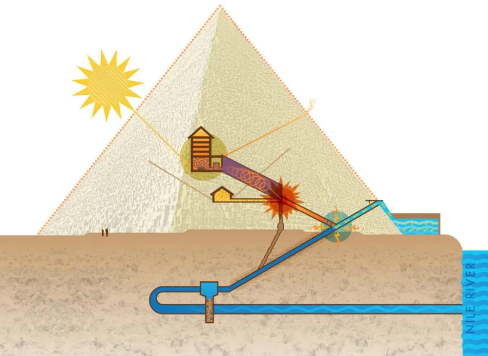 巨大发电站经过长达几年的数据采集和观察,特斯拉认定,古埃及人的金字塔最大的作用就是收集宇宙能量。