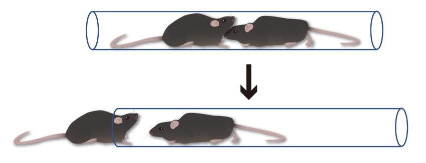 “鼠”生赢家更不容易上瘾?那么,如何在实验中模拟小鼠的“社会等级”呢?我们采用了经典的“钻管实验”:当两只体型相似的小鼠被放入狭窄的管道中,谁能将对方推出去,谁就被认为是“高等级小鼠”,而失败的则是“低等级小鼠”。