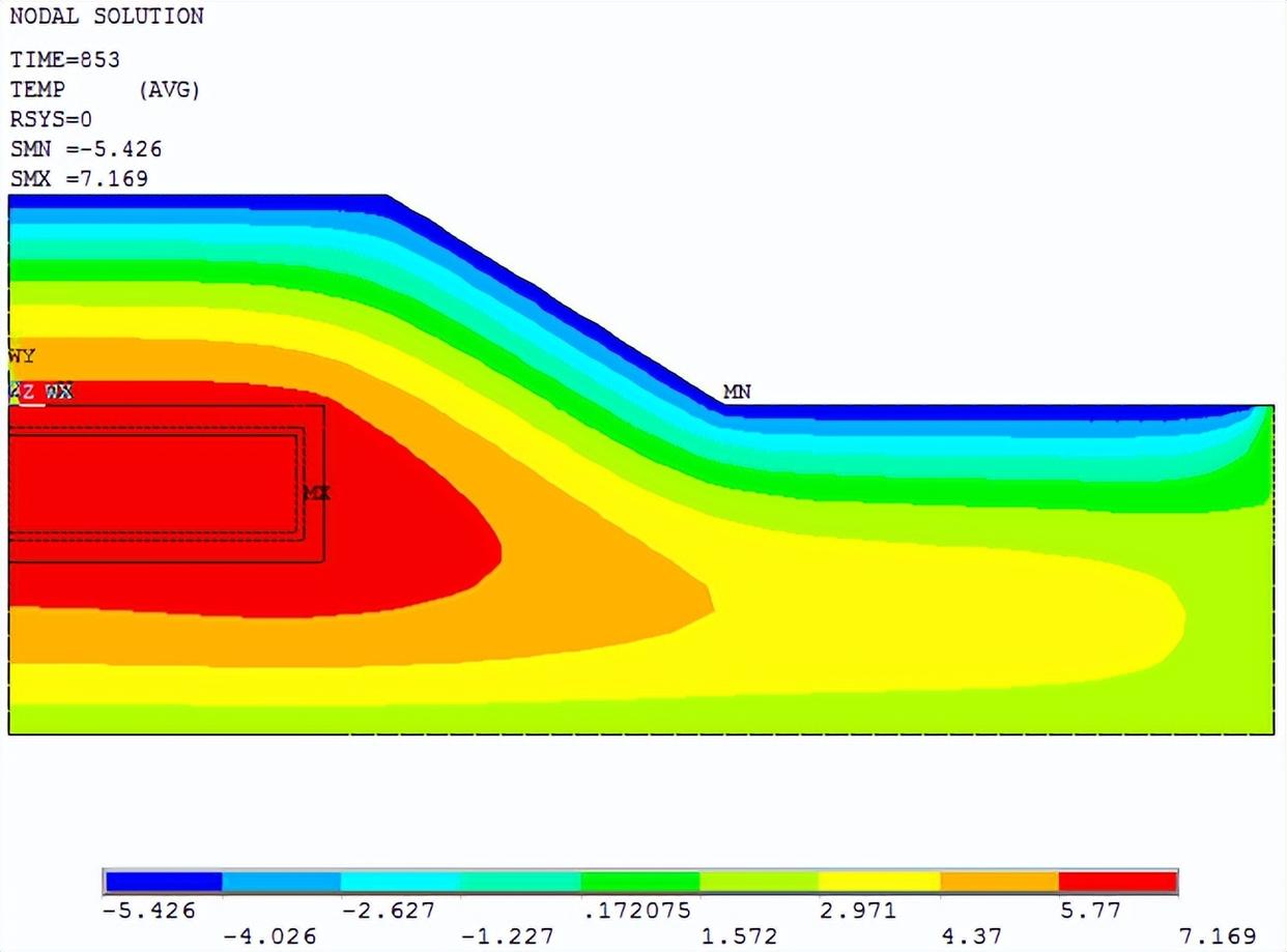 从仿真结果中可以看出,采用保温策略优化设计后,在年平均值为-0.2摄氏度,无任何主动技术条件下,各测点的水温在全年均保持在0摄氏度以上,消除了结冰现象,有力地保证了缪子探测器(MD)的正常运行。
