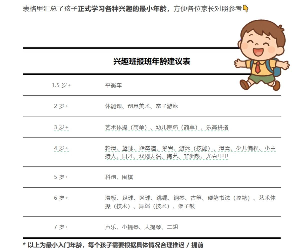 当然,这不代表最佳年龄,每一个孩子的发育不一样,兴趣点也不一样,大家可以根据自家孩子的情况,合理推迟或者提前。