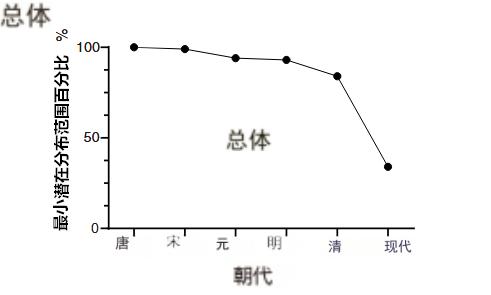长江江豚历史最小潜在分布范围的总体趋势
