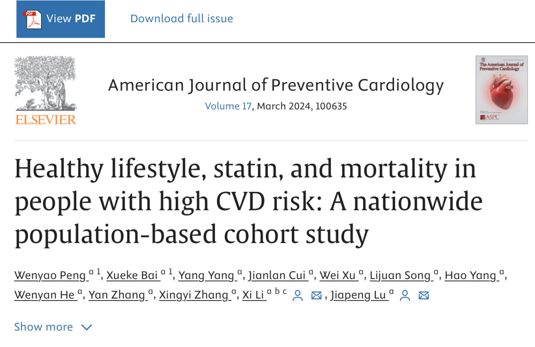 参考文献: Healthy lifestyle, statin, and mortality in people with high CVD risk: A nationwide population-based cohort study