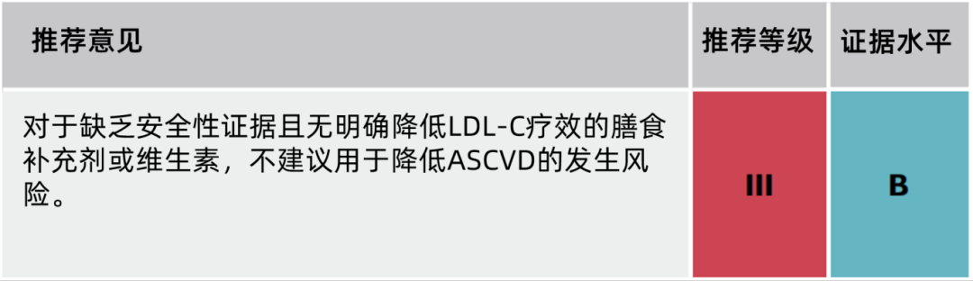 ❌ 不推荐任何膳食补充剂用于降低心血管风险
