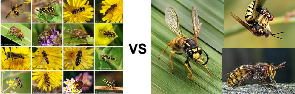 食蚜蝇(左图)和它的拟态对象黄蜂(右图)