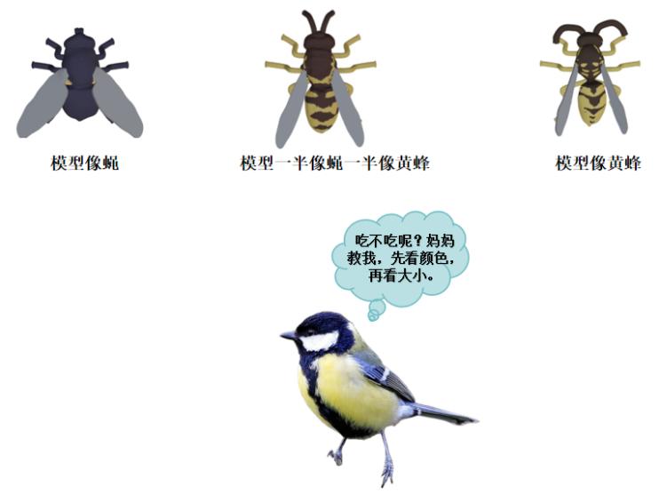 实验二:多模型假说的证伪多模型假说认为:当存在多个“值得模仿”的警戒模型时,拟态者同时模仿多个警戒模型,可以获得更多的保护优势。
