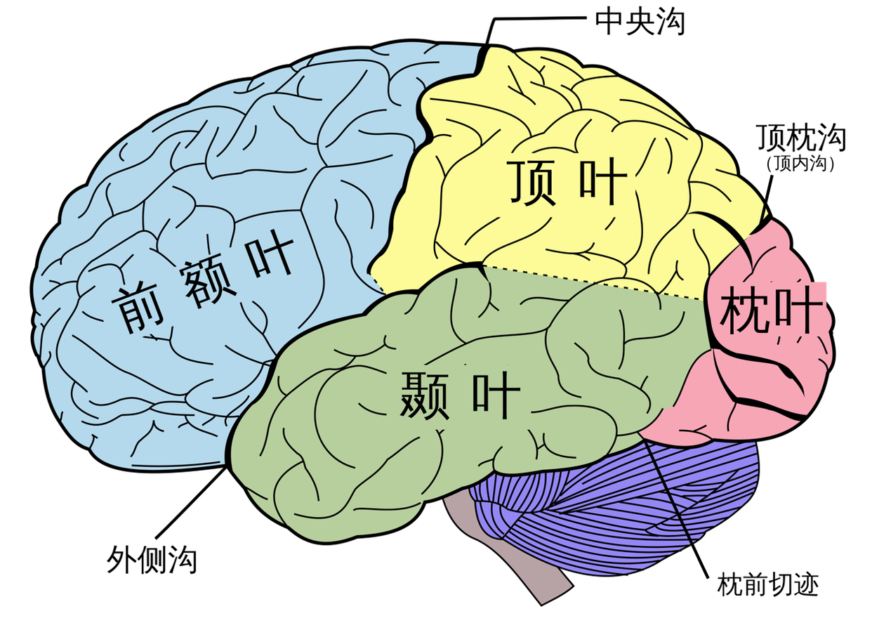 人脑的右侧剖面图