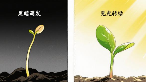 当我们把一颗种子埋在土壤中,它在黑暗中萌发,长出细长的黄化幼苗。而一旦接触到阳光,幼苗就会立刻停止伸长,叶片迅速转绿——这一神奇的生命转换背后,隐藏着植物感知和传递光线密码的精密分子机制。