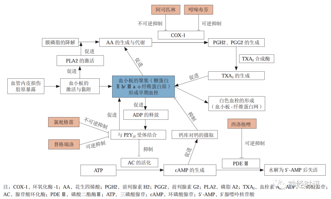 抗血小板药物能够抑制血小板的黏附、聚集及释放,从而阻止动脉粥样硬化血栓的形成,是脑梗死急性期治疗及二级预防的主要治疗用药。
