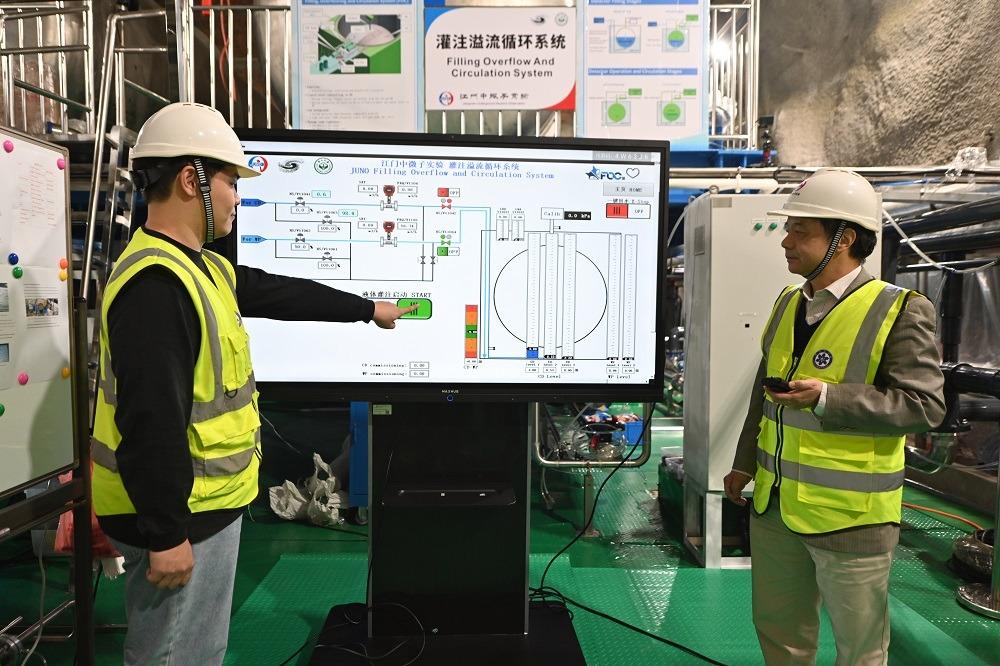 工程奇迹:45天灌注6万吨超纯水建造如此精密的探测器,每一个环节都充满挑战。江门中微子实验总工程师马骁妍介绍,最具挑战性的工序之一是向探测器灌注液体。团队需要在45天内完成6万多吨超纯水的灌注,同时要将内外有机玻璃球的液位差控制在厘米量级,流量偏差不能超过0.5%。