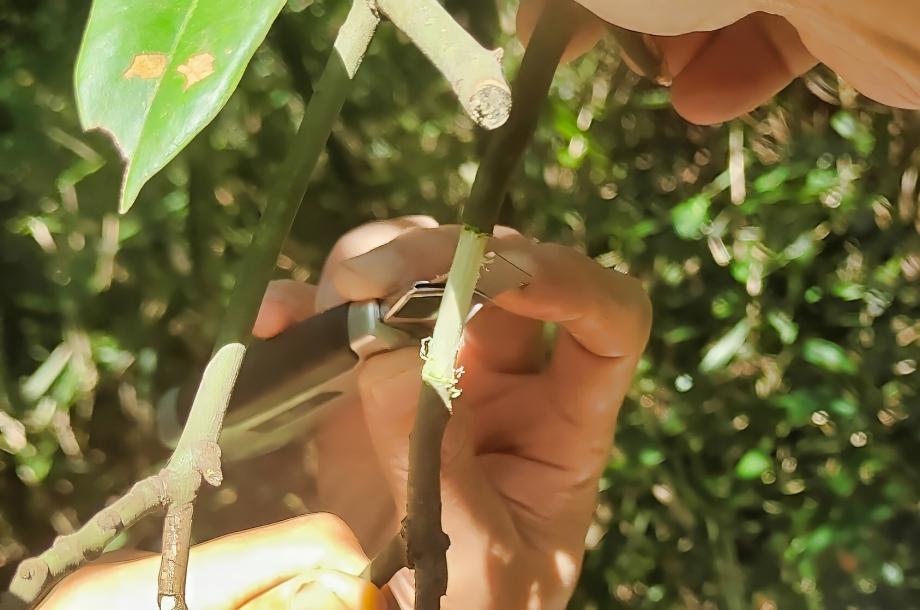 为了帮助这个濒危物种延续生命,2024年10月开始,我们团队开展了一项特别的救援行动——采用枝条高压繁殖方法,历经9个月的努力,终于2025年7月成功培育了18株博罗红豆幼苗,这项突破为保护这个珍稀物种带来了新的希望。