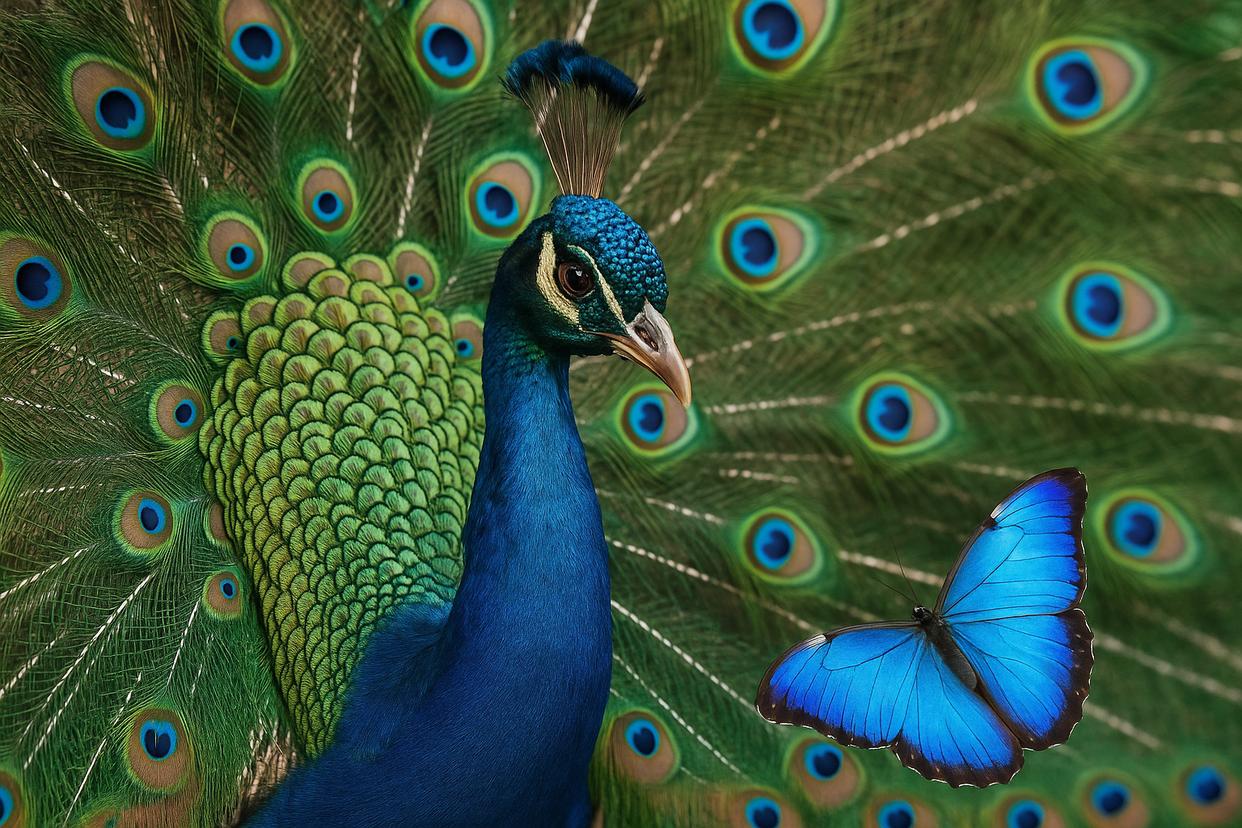 当光进入这些有周期性排列的微结构时,会发生“相干散射”:某些特定波长的光会被选择性反射出来,于是我们就看到了鲜艳的颜色。孔雀羽毛、蝴蝶翅膀或甲虫外壳上的绚丽色彩,都是典型的结构色。