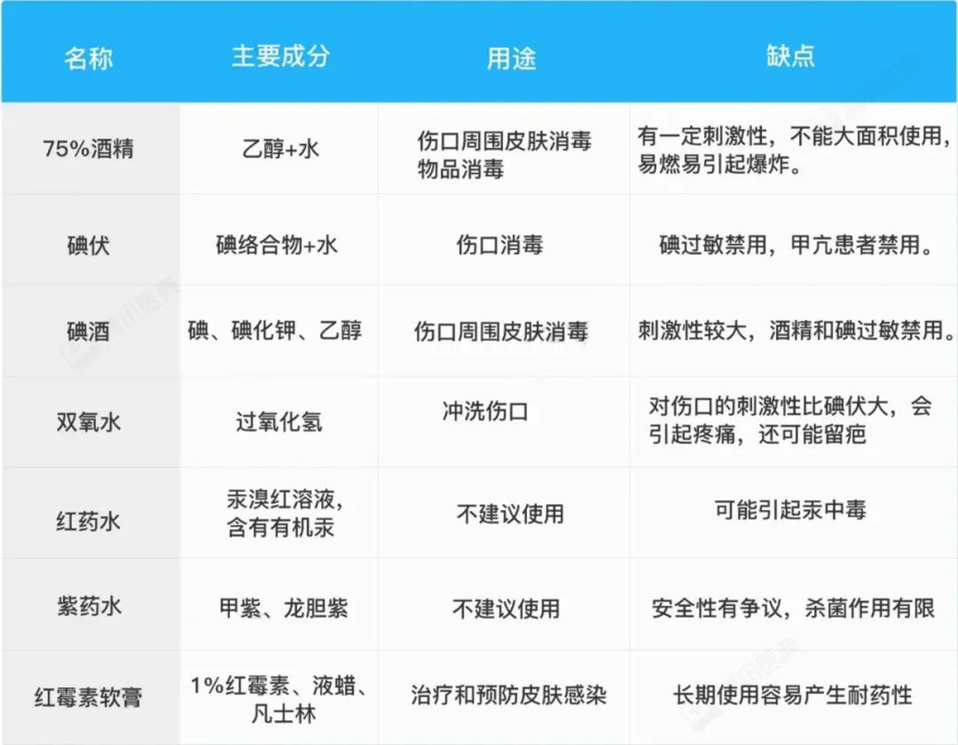 缺点:酒精挥发性强,说散就散,毫不留恋!还容易无差别攻击,也会让健康细胞蛋白凝固,从而影响伤口愈合。但是,酒精无法杀灭芽孢。最关键的是,用起来有些刺疼。