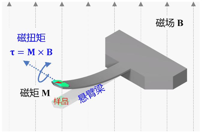 该探测器的核心,是一个能以特定共振频率振动的悬臂梁结构,形似一根小弹簧。当将微纳样品被安装在悬臂梁末端、置于磁场中时,样品会受到一种叫“磁扭矩”的作用力——类似于被轻轻拧了一下,这种力会引起悬臂梁共振频率的变化。再利用激光干涉测距技术,实时监测频率变化,从而精确获得材料的磁性信息。