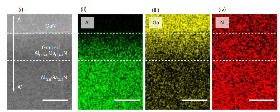 Al0.6-0Ga0.4-1N外延层的扫描透射电子显微镜及对应的X线能量色散谱元素分布图