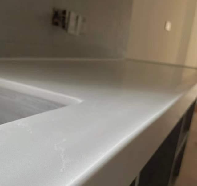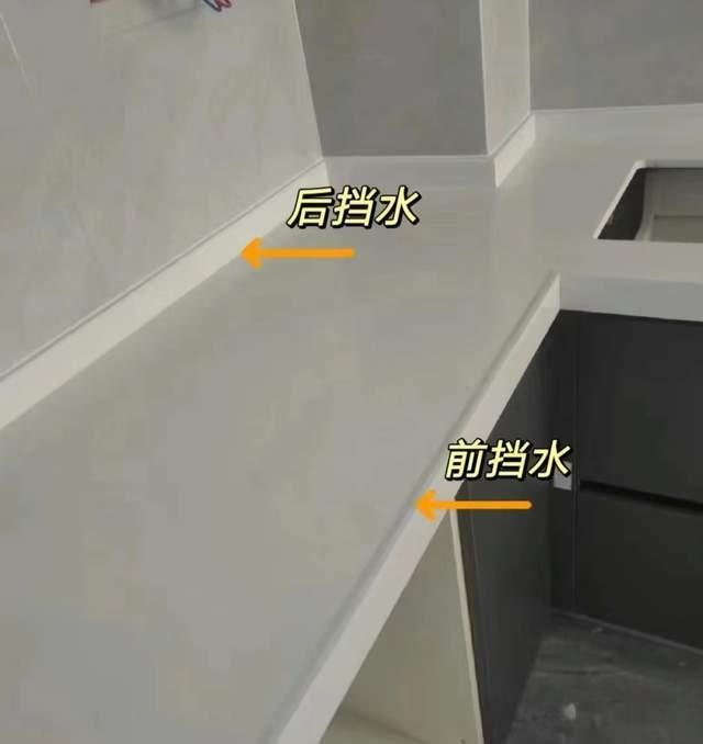 有了前挡水以后,台面上的水就不会顺着流到地柜门、地面上了。不过前挡水条可不能像传统后挡水条那样做,要做弧形一体的设计。