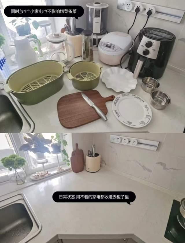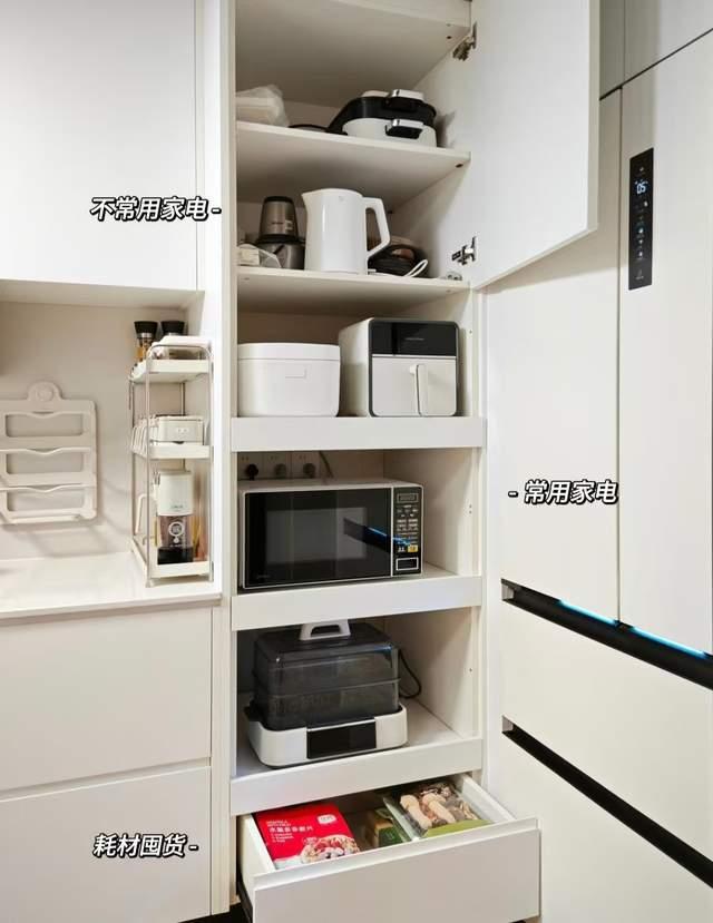 年轻人的厨房里都会有各种各样的小家电,除了电饭煲、烧水壶、豆浆机、微波炉这些,还有破壁机、空气炸锅、小烤箱、多士炉等等,如果全都摆放在台面上肯定是放不下的,还容易积灰。