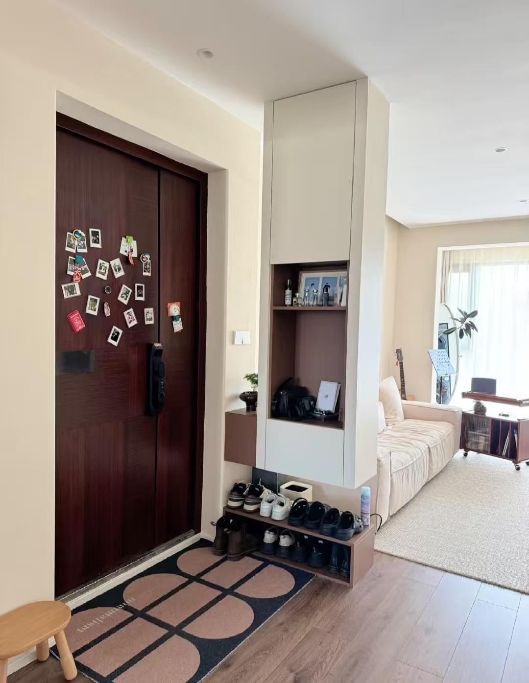 家里有个独立玄关真的很重要,一来可以放置鞋柜收纳鞋子和进出门时的小物件,二来把玄关设计好看后也能提升进出门时的仪式感,给第一次来家里的人留下一个好印象。