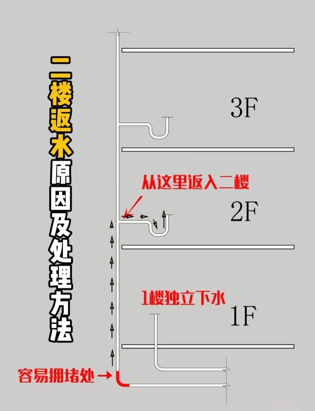 万一楼上有不道德的邻居往下水管里扔一些易堵塞管道的垃圾,最容易出,现堵塞的地方就是管道的末端也就是二楼,所以我们经常看到很多二楼房子的卫生间、厨房下水管出现返污水的情况。