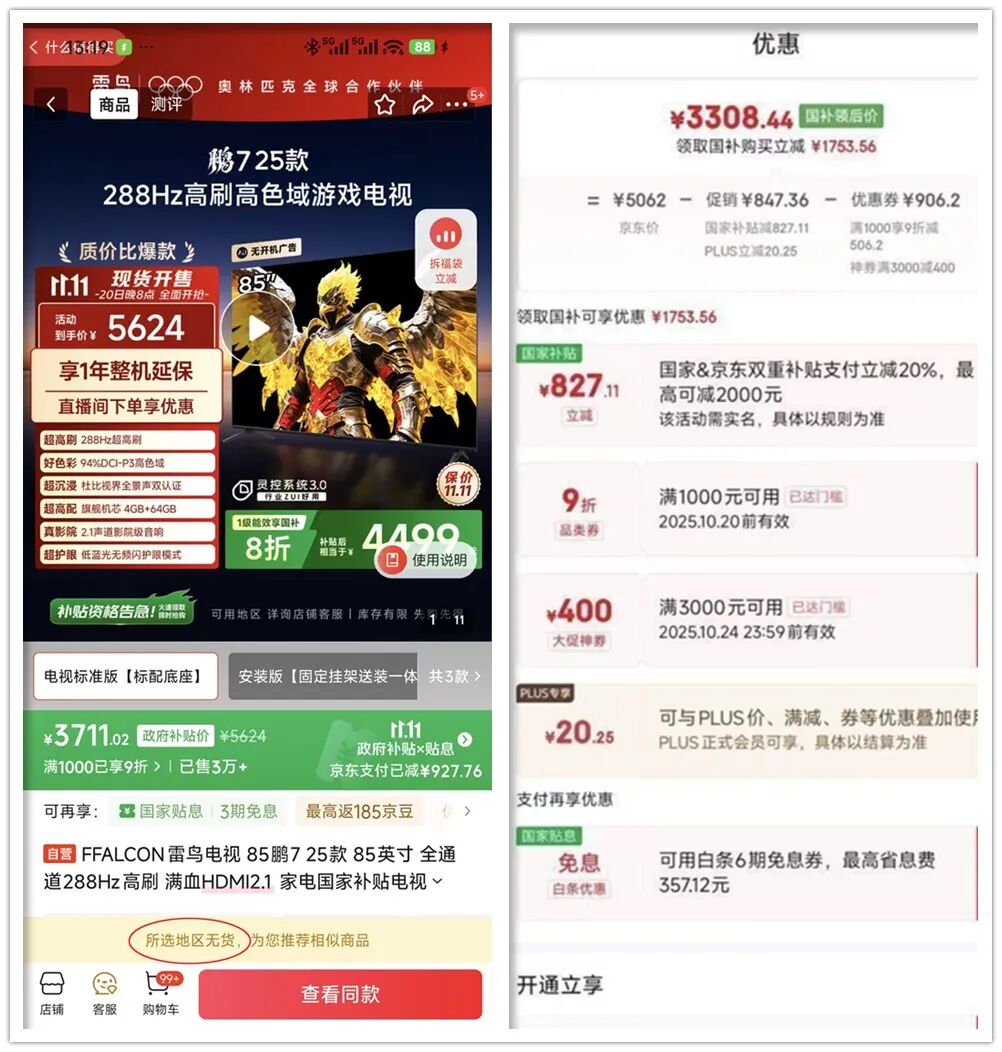根据张大妈爆料,狗东原价5624元的雷鸟鹏7 2025款,通过国补与多重优惠后,实付低至3308.44元。这可不是鹏6,而是鹏7,虽然我印象中618更便宜,但在目前的时间节点,这个价格没毛病了。我刚用自己账号测了一下: