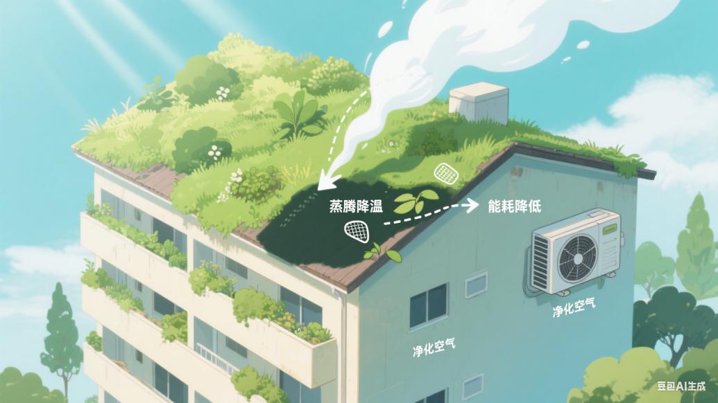 为应对这一挑战,绿色屋顶和城市绿化成为了有效的解决方案。绿色屋顶通过植被的蒸腾作用和遮阴效果有效降低建筑物表面温度,减少空调能耗,同时也能净化空气、增加城市绿量,成为气候调节和空气净化的绿色屏障。