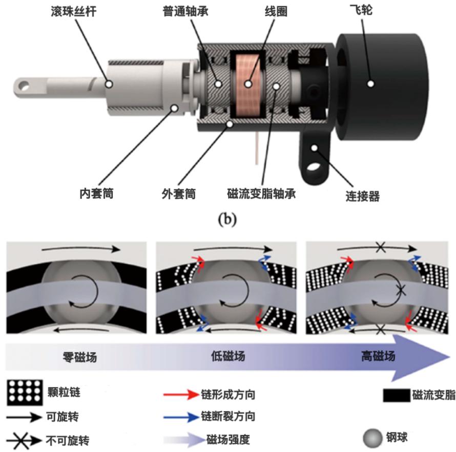 其核心是磁流变材料在不同磁场下的状态变化——零磁场时颗粒随机分布可自由旋转,施加磁场后颗粒形成链状结构限制旋转