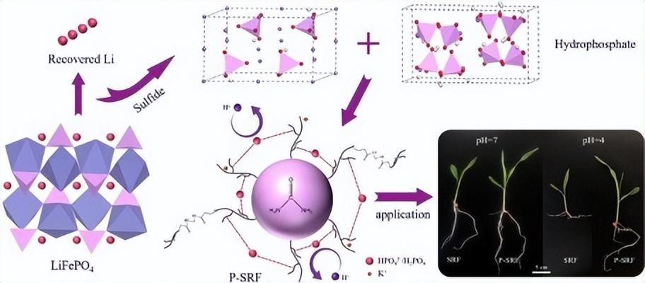 更巧妙的是,研究团队瞄准了缓释肥料领域的一个技术瓶颈——多数丙烯酸系缓释肥在酸性条件下网络结构不稳定,限制了其在酸性土壤中的应用。于是,一项创新技术应运而生:将退役电池中的磷,转化为适用于酸性土壤的“耐酸缓释磷肥”,同时高效回收锂。这不仅解决了LFP电池回收“不赚钱”的困境,突破了缓释肥的“酸敏感”瓶颈,还为缓解资源环境压力提供了新思路,真正实现了“变废为宝”的循环经济理念。