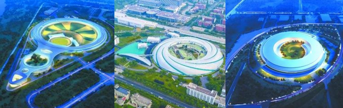 左:北京高能同步辐射光源(HEPS)中:上海同步辐射光源(SSRF)右:合肥先进光源(HALF)