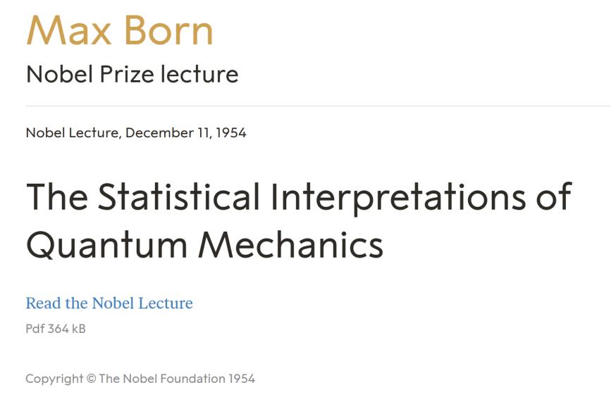 [2] Born M. Statistical interpretation of quantum mechanics[J]. Science, 1955, 122(3172): 675-679.