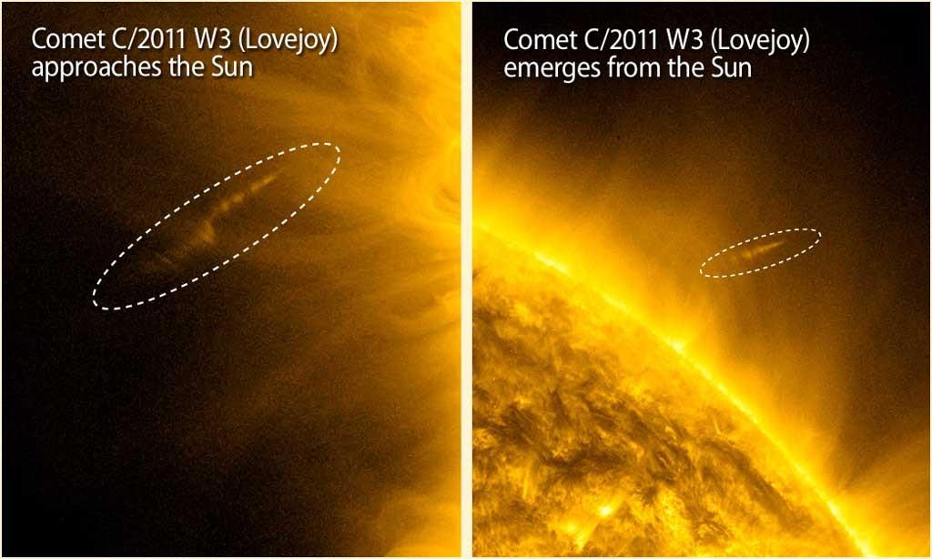 洛夫乔伊彗星冲入距太阳约14万公里的近日点,遭遇强烈的太阳辐射